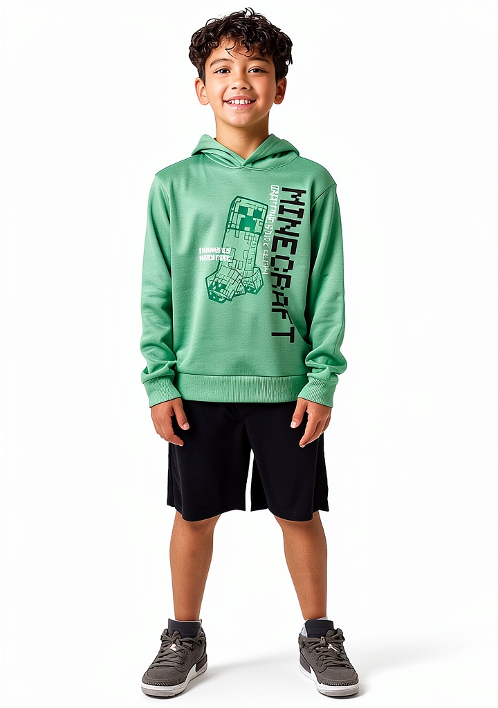 Immerse in the blocky world of Minecraft with this officially licensed three-piece outfit set from Lanky Box. The set includes a hoodie featuring bold “Minecraft” graphics and a Creeper character, a matching short-sleeve tee with the Minecraft logo and additional blocky designs, and complementary shorts. Constructed from high-quality materials, the hoodie is made of 100% fleece polyester for warmth, the tee from single jersey filament fiber 100% polyester for breathability, and the shorts from 100% polyester flat-back mesh for flexibility. Product dimensions are 6 x 10 x 12 inches, weighing 2 pounds, and it falls under the child male department. First available on February 20, 2025, this set has garnered positive customer reviews, with a 4.4 out of 5 stars rating from 18 reviews, and ranks #74 in Boys’ Short Sets.