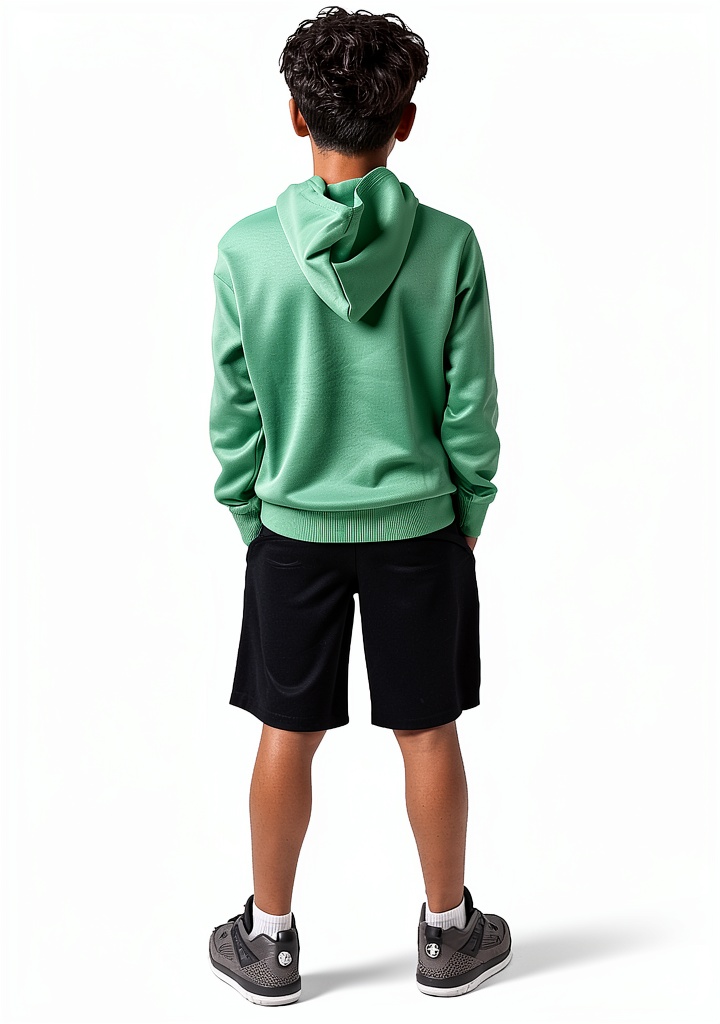 - High-quality polyester materials: fleece hoodie, jersey tee, and mesh shorts for comfort and durability
